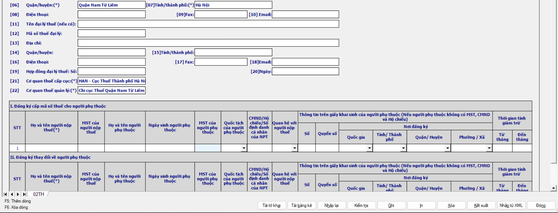 Bước 2: Nhập thông tin của từng người lao động và người phụ thuộc tương ứng.